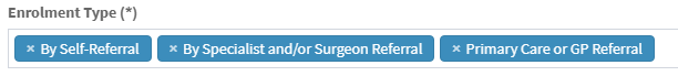 This field is still mandatory, however you are able to select one or more from: “By Self-Referral”, “By Specialist and/or Surgeon Referral”, and “Primary Care or GP Referral”.