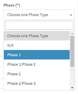 Phases are now a drop-down menu in the database. This is to allow for more streamlined searching in the app. Previously, phases were importing and being entered in a multitude of ways, such as “Phase 2”, “2”, and “Phase II”, which gave us many discrete options in our mobile app. It is still a mandatory field, but will not import from the registries.